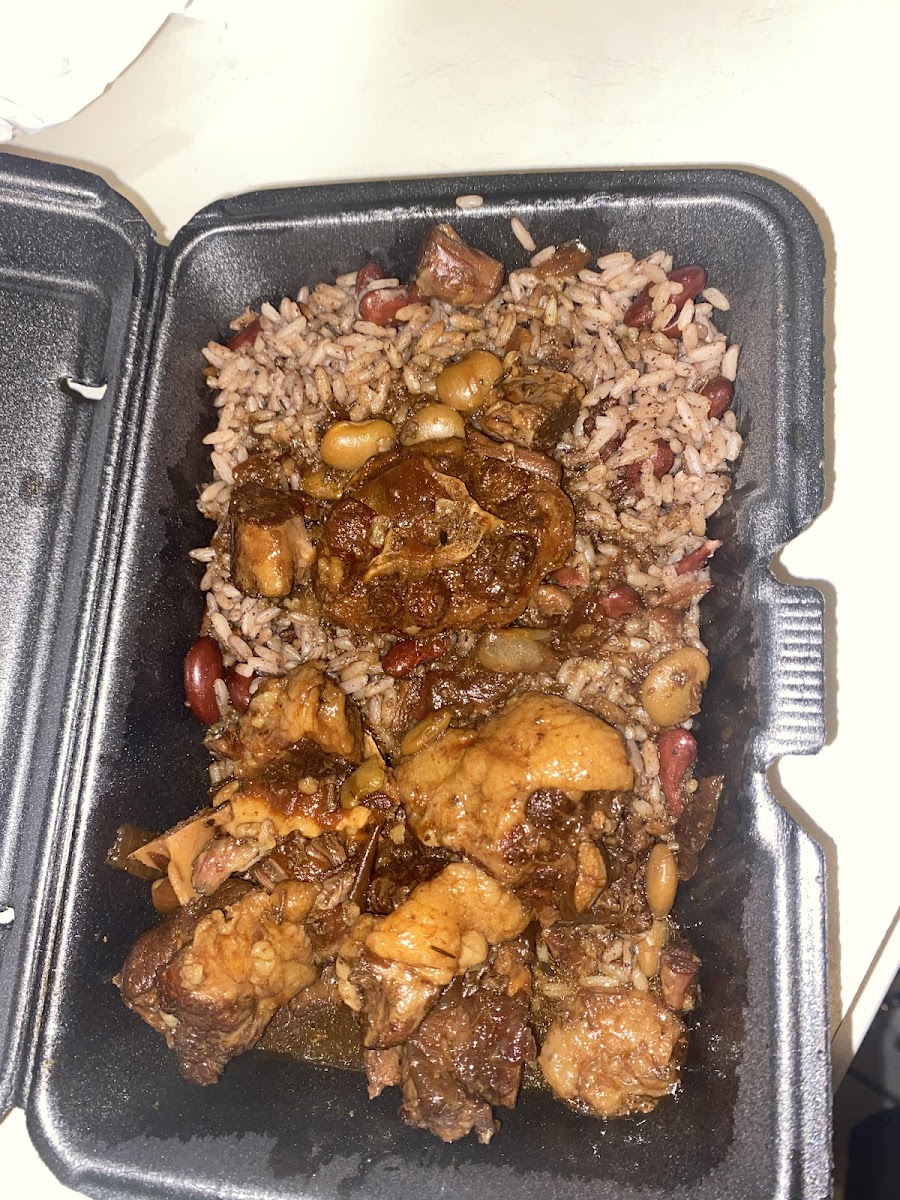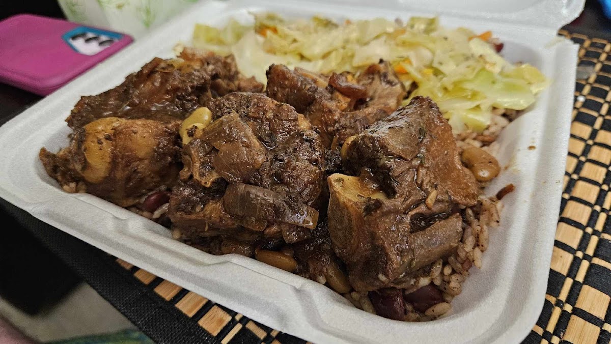 Oxtail and Jerk Chicken Dinner with Beef Patty